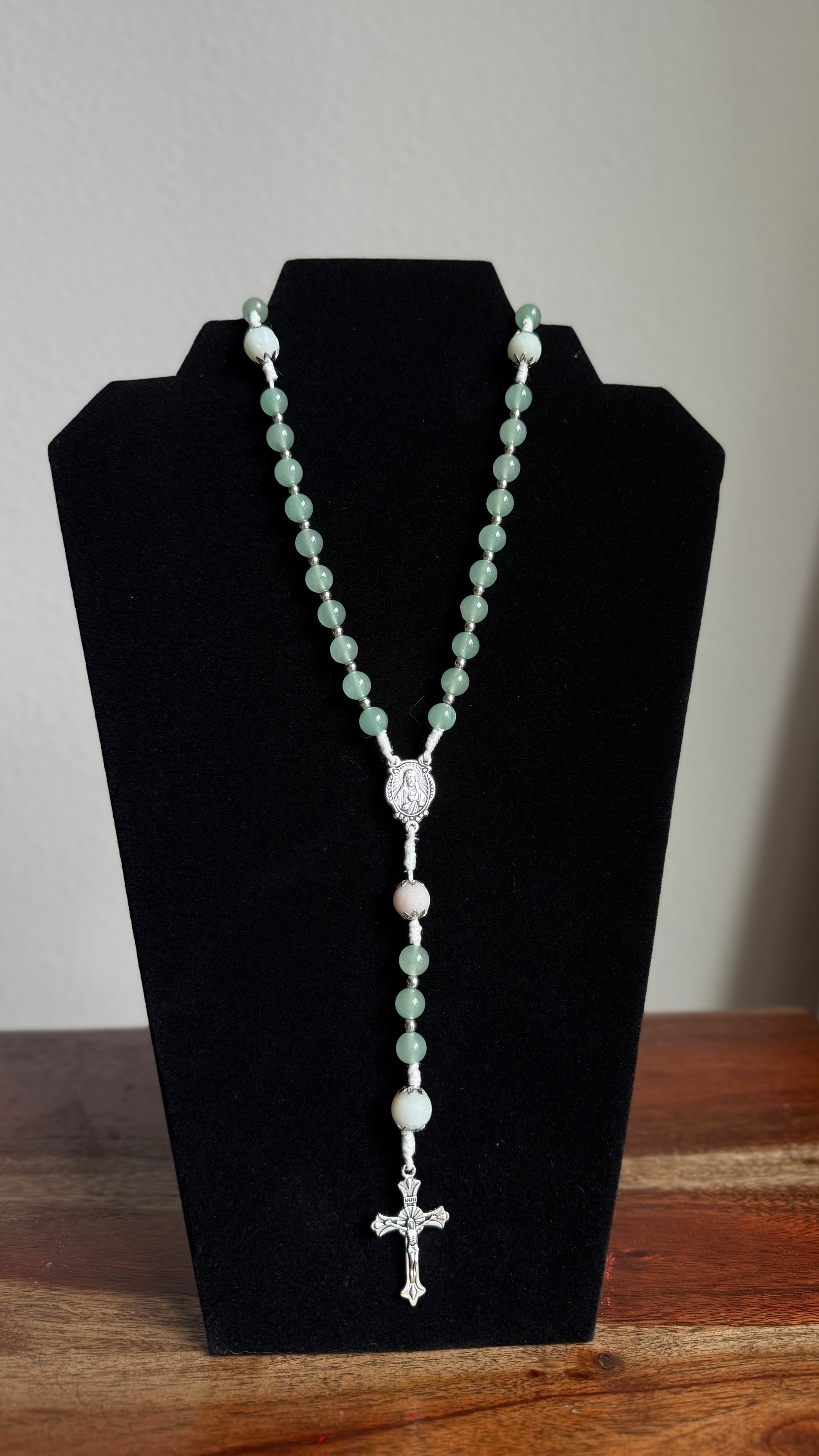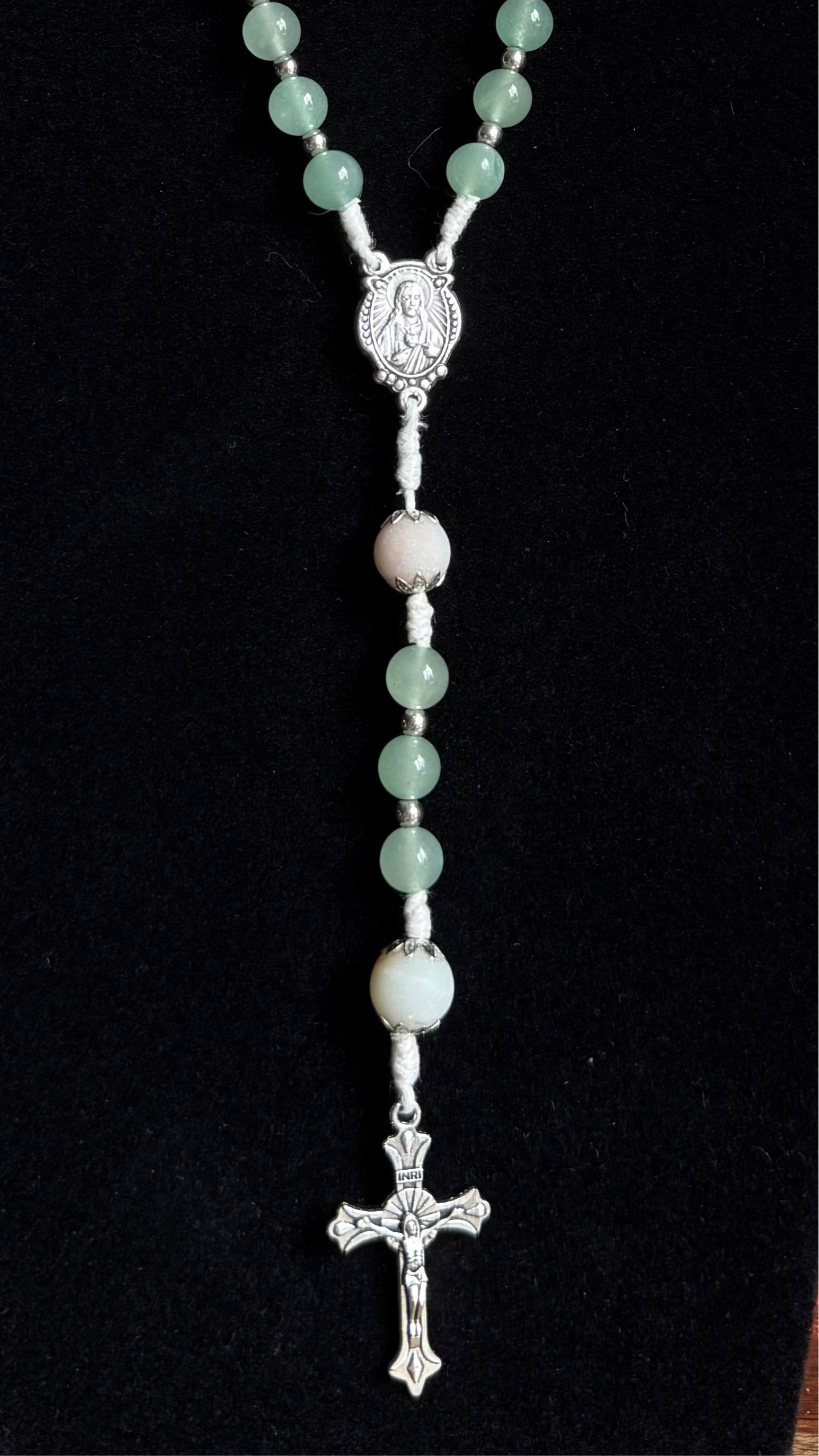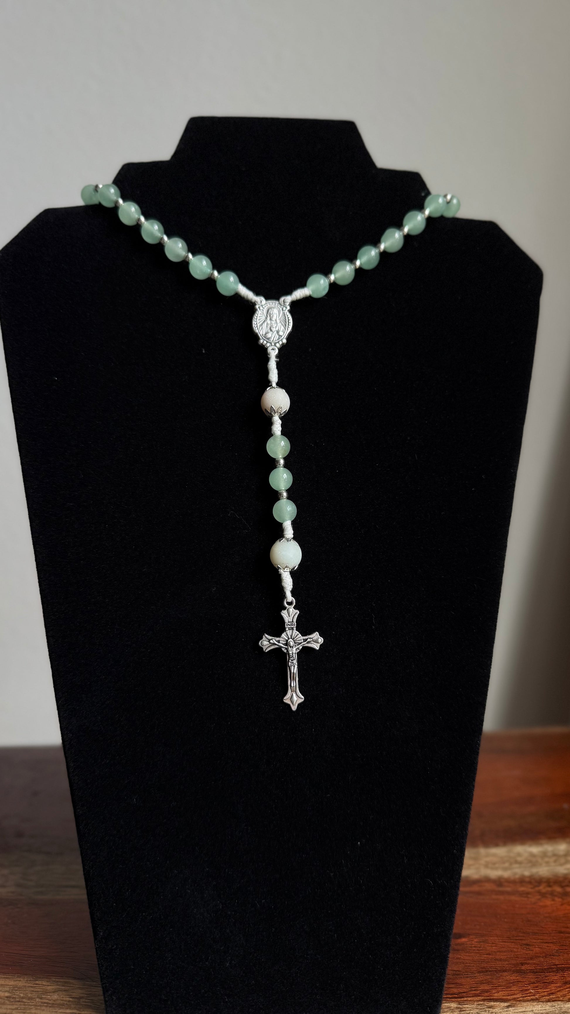 This rosary draws its name from the graces that flow through Mary, the Mediatrix of All Graces. The green beads symbolize spiritual growth, new beginnings, and healing — while the white beads reflect purity and the cleansing power of grace. This piece feels like a fresh spring in the desert, perfect for those seeking interior renewal, healing, or to grow in virtue.